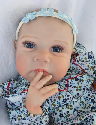 Muñeca de bebé con aspecto realista, ideal para coleccionistas o como juguete. - Pelo rubio y ojos azules. - Ropa interior de algodón. - Manos y pies detallados.