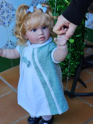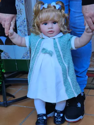 👶Preciosa bebe reborn ⚖️Con peso repartido por todo el cuerpo ,relleno de ecobidrio y miraguano, con cuerpo de tela y extremidades de vinilo siliconado 👶con muchos detalles como rojeces, venas visibles ,uñas y pestañas, se aprecia mejor en la última foto 🎁se entrega con la ropita de la foto chupete, biberón ,pañal ,pendientes (opcionales)hoja de adopción y manta donde irá envuelta 📏mide 60cm y pesa 4k pero se puede modificar a gusto de la mamá o papa 📦se envia en 24h a 48h muy bien protegida 👶Más modelos de bebés renacidas en mi escaparate