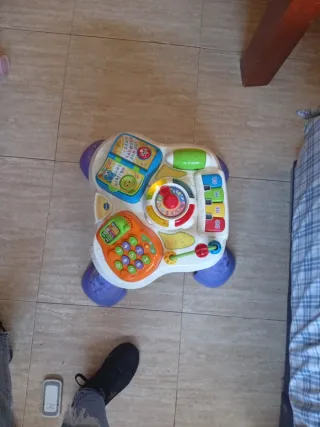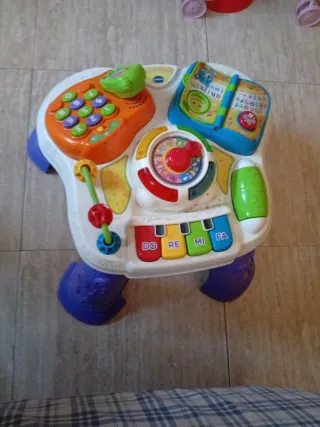 Mesa de actividades Vtech para bebés y niños pequeños. Ideal para el aprendizaje y la diversión. - Diseño interactivo con múltiples paneles. - Incluye teléfono, piano y libro. - Patas desmontables para usar en el suelo.
