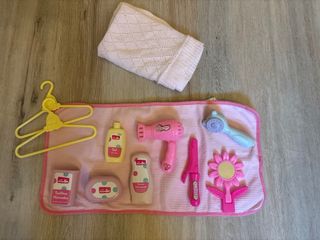Preciosa bañera para muñecas o juguetes de bebé. Es de color rosa y tiene un accesorio para ducha. Está en buen estado. - Bañera de plástico resistente. - Color rosa claro. - Incluye accesorio de ducha rosa oscuro. - Patas de color lila.