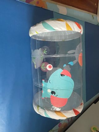 Rodillo hinchable con divertidos animales de Fisher Price. Ideal para el juego y desarrollo del bebé. Interior con 3 Compartimentos. Incluye 3 Pelotas en su Interior. Dimensiones 48X44X25cm