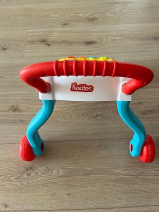 Andador musical Nenittos con múltiples actividades interactivas para el entretenimiento y desarrollo del bebé. - Panel de actividades con piano. - Teléfono de juguete. - Ruedas giratorias. - Mango para empujar.