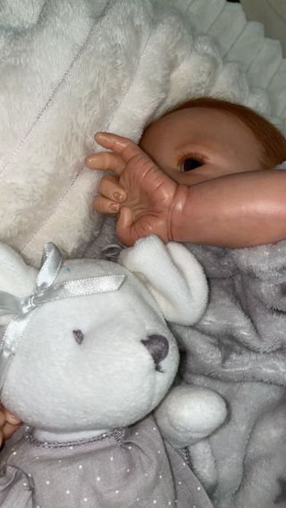 Precioso bebé reborn de vinilo, con un aspecto muy realista. Kit Enya de Heike kolpin. Pesa 3kg y mide 49cm. - Cuerpo de vinilo. - Pelo injertado. - Ojos de cristal. - Incluye certificado de autenticidad