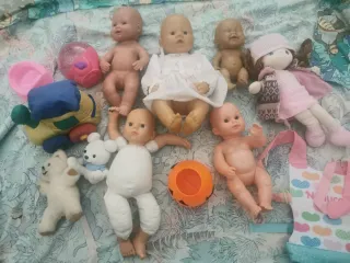 Lote de muñecas embarazadas (no marca). Muñecos ken Barbie - Varias muñecas de diferentes tamaños y apariencias. - Cochecito de bebé rosa y verde. - Cochecito de bebé morado.