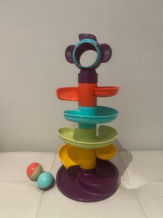 Divertida torre de bolas para bebés con diseño de mono. - Incluye varias plataformas de colores para que las bolas desciendan. - Viene con dos bolas de juego. - Base ancha y estable.