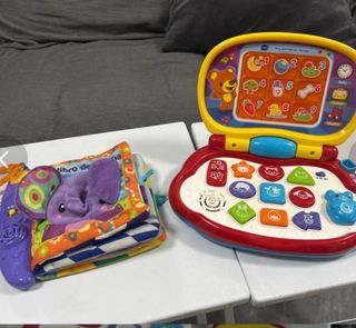 Pack de dos juguetes para bebés de 6 a 12 meses. - Libro de tela con elefante. - Ordenador infantil interactivo VTech. -pilas incluidas