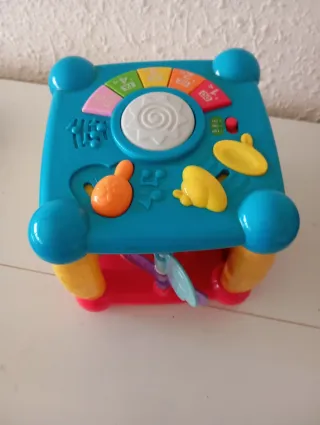 Divertido juguete interactivo para bebés con múltiples actividades. - Diseño colorido y atractivo. - Botones y texturas para estimular los sentidos. - Incluye elementos musicales y de juego. -En dos idiomas español e inglés. Faltan las pilas