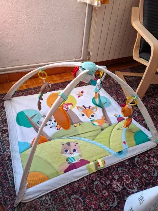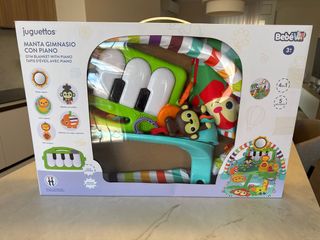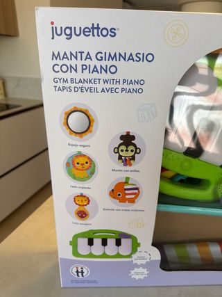 Gimnasio de juegos para bebés con piano interactivo y manta de actividades. - Manta con diseño de animales. - Piano con teclas de colores. - Incluye varios juguetes colgantes. Esta sin estrenar ya que era un regalo pero ya tenían uno. Lo doy con su caja donde explica el montaje.