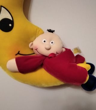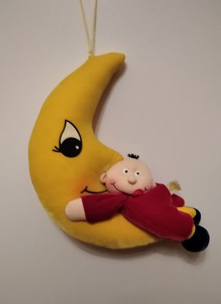 bonito peluche, luna con bebé montado, bonito y bien conservado. medidas , altura 42 CT ideal para colgar en la lámpara del cuarto o adornar en la pared, ETC
