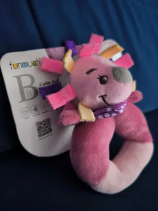 Sonajero de peluche para bebés de la marca Funmuch. Ideal para estimular los sentidos del bebé. Ideal para regalo. - Diseño de animalito rosa con sonajero. - Colores vivos y textura suave. - Apto desde 0 meses. Cualquier duda preguntame sin compromiso.
