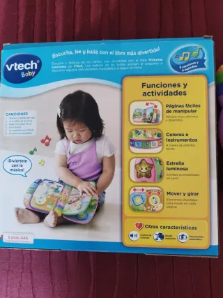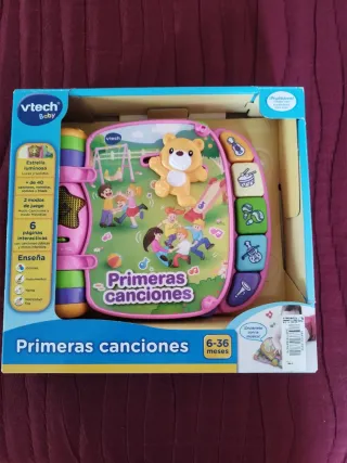 Libro interactivo Primeras canciones de VTech Baby, ideal para los más pequeños. - Estrella luminosa. - Más de 40 canciones, melodías, sonidos y bases. - 2 modos de juego. - 6 páginas interactivas. - Diseñado para edades de 6 a 36 meses. Como nuevo con caja intacta.