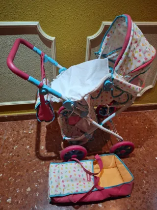 Este carrito de juguete es perfecto para las horas de juego. - Estructura de metal y plástico. - Diseño colorido con corazones y letras. - Incluye capazo extraíble. - Además se puede plegar