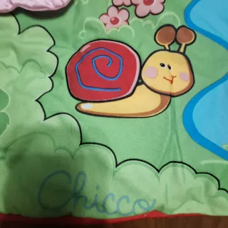 Manta de actividades de la marca Chicco, ideal para el entretenimiento y desarrollo del bebé. Presenta un diseño colorido con temática de granja y animales. - Incluye varios elementos interactivos y texturas. Tiene sonidos - Diseñada para estimular los sentidos del bebé. - Fácil de plegar y transportar.