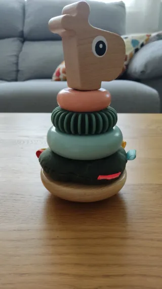 Torre apilable para bebes de diferentes materiales y texturas. Está como nueva. De la marca Done by Deer. Precio original 30 euros.