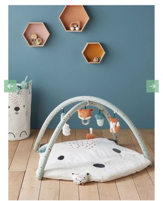 Área de juego para bebés con diseño de bosque y animales. - Incluye varios juguetes colgantes. - Colchoneta suave y acolchada. - Estructura segura y colorida.