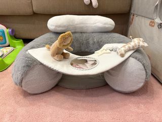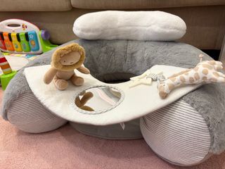 Asiento de apoyo para bebés con panel interactivo y juguetes. - Incluye peluche de león. - Incluye peluche de jirafa. - Incluye espejo. - Diseño acolchado y suave.