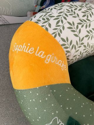 Asiento de actividades de Sophie la girafe, ideal para el entretenimiento del bebé. -En su caja, usado 2 veces solamente. -Comprado en corte inglés por 70€ - Diseño con estampado de hojas verdes. - Incluye varios juguetes colgantes. - Texturas variadas para estimular al bebé.
