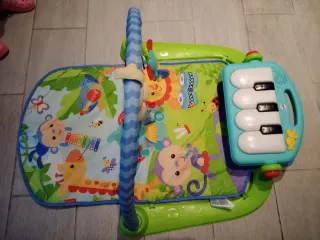 Gimnasio interactivo para bebés con arco de juegos y piano. - Tapete con diseño de selva y animales. - Piano con teclas de colores. - Incluye juguetes colgantes.