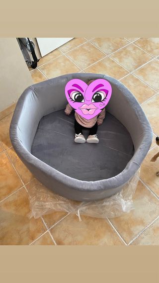 Piscina de bolas de suave material, ideal para el entretenimiento de los más pequeños. Su diseño es seguro y divertido. - Color: Rosa y gris. - Material: Plástico y tela. Lo vendo con todas las bolas que hay, son blanditas