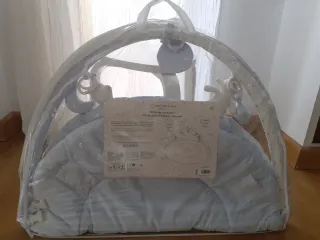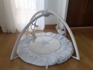 Se montó y no se ha llegado a usar. Tu bebé podrá divertirse y estimular sus sentidos en esta colchoneta de actividades. Gracias a sus materiales suaves y delicados, crea un espacio de juego seguro y su diseño permite plegarlo para guardar o transportarlo. - Colchoneta acolchada con forma de hoja. - Arco de madera natural. - Juguetes colgantes con diferentes texturas y formas.