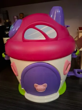 Casa de juguete para Bebé Llorón, modelo Casa Burbujas. Incluye todo lo que sale en las fotos tal cual. Muñeco incluido. Necesita pilas. El bebe soltara sus lagrimas en la parte superior del tejado y este empezara a soltar pompitas por la chimenea. ( hay que rellenarlo de liquido de pompas y ponerle pilas para que funcione) .