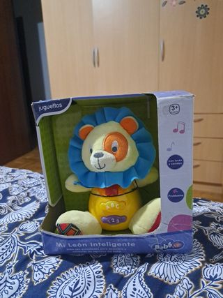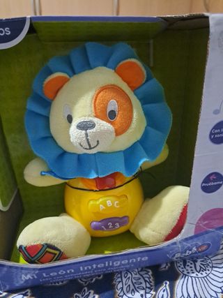 León de peluche interactivo para bebés, con actividades para descubrir y estimular sus sentidos. Ideal para los más pequeños. - Incluye luces y sonidos. - Edad recomendada: 3+ meses. - Marca: Bebé VIP.