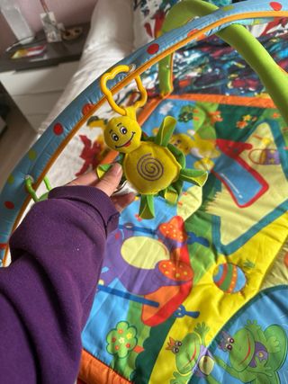 Hamaca para bebé de la marca Bbest con un divertido arco de juegos. - Hamaca con arco de juego. - Respaldo multiposición. - Diseño moderno y cómodo. - Está en perfecta condiciones con su caja y todo.