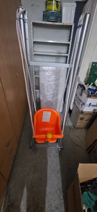 Columpio de plástico naranja para bebés.. - Asiento ergonómico. - Barra de seguridad frontal. - Cuerdas resistentes...