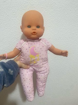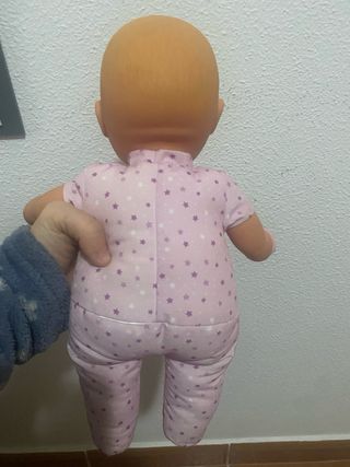 bebe nenuco con el cuerpo de tela rosa y que cierra los ojos cuando se tumba