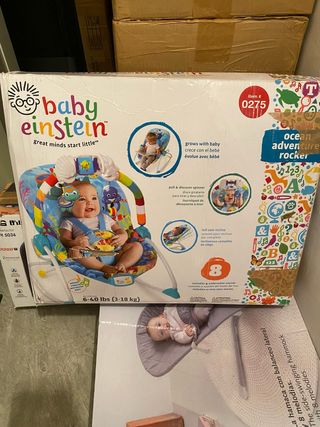 Mecedora para bebés Baby Einstein modelo Ocean Adventure. - Diseñada para bebés de (3-18 kg). - Incluye un spinner para entretener al bebé. - Cuenta con 8 melodías y sonidos subacuáticos. - El asiento se reclina completamente.