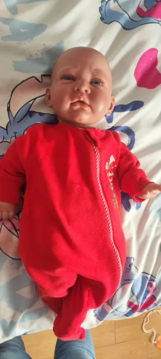 Muñeca estilo Reborn de bebé, ideal para coleccionistas. 42 cm. Cuerpo de trapo - Aspecto muy detallado. - Ropa de punto incluida. - Incluye chupete y biberón.