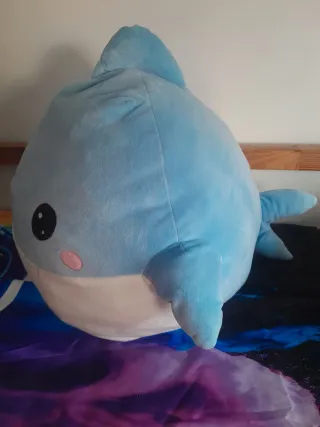 Adorable peluche de tiburón bebé, perfecto para abrazar. Suave y tierno. - Color azul claro. - Diseño de tiburón. - Material de felpa.