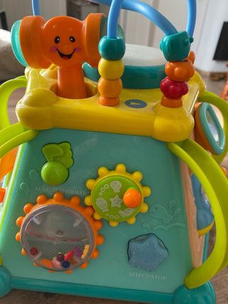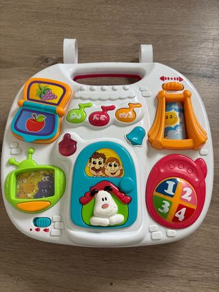 Divertida mesa de actividades para bebés con múltiples juegos. - Diseño colorido y atractivo. - Incluye diferentes texturas y formas para estimular el desarrollo. - Incorpora un espejo seguro para bebés. - Cuenta con interruptor de encendido/apagado y botones. - Base estable con patas de apoyo. Ver otros juguetes de bebe, puedo hacer lote si se desea. Comprado en El Corte Inglés Mas juguetes en mi perfil, puedo hacer un lote negociable