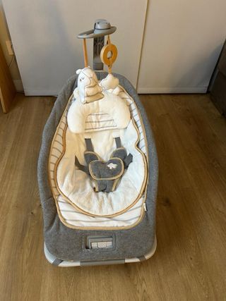 Hamaquita para bebé en color gris. Se encuentra prácticamente sin usar. - Diseño acolchado y confortable. - Incluye arnés de seguridad. - Móvil con juguetes. - Tejido suave al tacto.