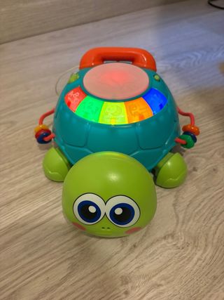 Divertida tortuga musical interactiva, ideal para el desarrollo de los más pequeños. Sus colores vivos y sonidos estimulan sus sentidos. - Diseño de tortuga con caparazón interactivo. - Incorpora luces y sonidos. - Ruedas para que el bebé pueda arrastrarla.