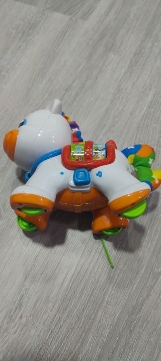 Preciosa y colorida figura de pony Clementoni para bebés. Ideal para que los más pequeños se diviertan. - Funciona correctamente el sonido. - Juguete de arrastre con cuerda. - Diseño atractivo y alegre. - Perfecto estado. - A partir de 6 meses.