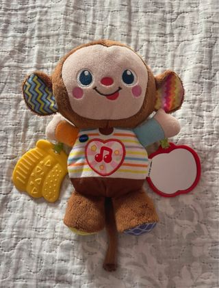 Mono de peluche interactivo para bebés de la marca Vtech. Ideal para estimular el desarrollo sensorial y motor. - Diseño de mono de peluche suave. - Incluye accesorios para morder y jugar. - Colores vibrantes y texturas variadas. - P6ilas incluidas