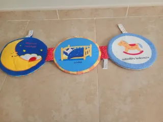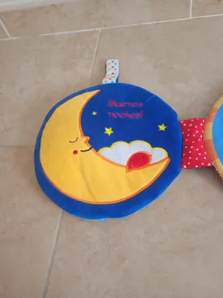 Cuento tela musical bebe Primeras palabras Tacto terciopelo Como nuevo Se puede colocar en la cuna o en el parque Psicomotricidad fina aprendizaje Tejido lavable Chichonera Bebe primeros pasos juguete sonajero
