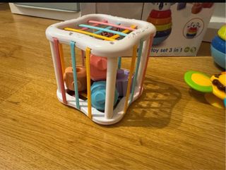 Variado de juguetes para bebés y niños pequeños, ideal para estimular el aprendizaje y la diversión. Se vende junto o separado, dime cual quieres y te digo precio - Pelota sensorial con texturas y números. - Peluche musical con luces. - Octopu educativo. - Hipopótamo interactivo. - Arcoíris de madera. - Set de puzzles de granja y vehículos. - Libro musical. - Tambor de tela. - Juguete de encaje de frutas y verduras.