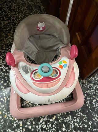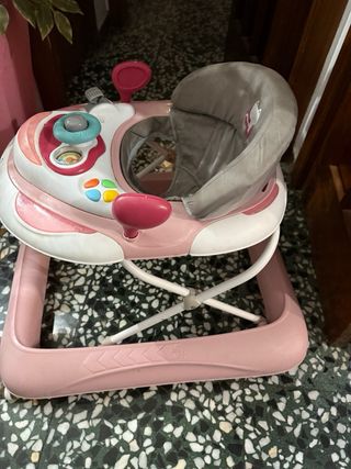 Andador para bebés de la marca Olmitos en color rosa. - Asiento acolchado. - Bandeja de actividades con juguetes. - Ruedas giratorias.
