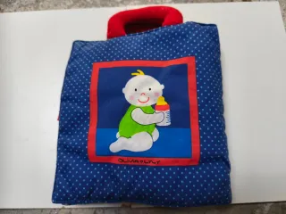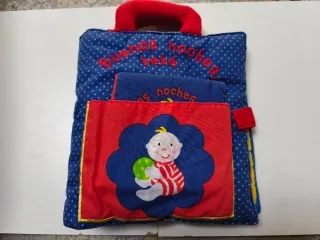 Es un libro de tela con elementos móviles diseñado para la estimulación sensorial. Incluye ilustraciones tiernas y tranquilizadoras, como la de un bebé, para reforzar las rutinas nocturnas. El libro ayuda a los niños a relajarse y prepararse para dormir. Puede incluir un muñeco con el que el niño puede jugar.