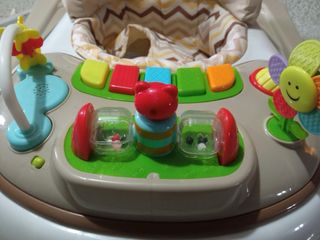 Este saltador y columpio es perfecto para el entretenimiento y desarrollo de tu bebé. - Diseño colorido con temática de insectos. - Incluye varios juguetes colgantes para estimular al bebé. - Estructura resistente y segura.