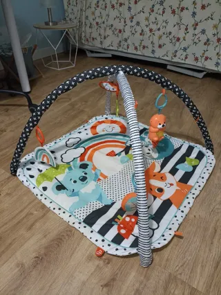 Gimnasio de actividades para bebés con un diseño colorido y divertido. - Incluye arco con varios juguetes colgantes. - Tapete acolchado con estampados de animales y arcoíris. - Diseñado para estimular el desarrollo del bebé.