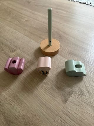 Juego de encajables de madera con temática de verduras. - Incluye zanahoria, tomate, cebolla y aguacate. - Diseñado para apilar y fomentar la motricidad fina. - Material: Madera. - Edad recomendada: 2+ años.