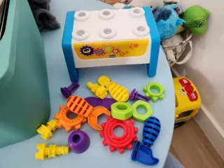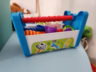 Caja de herramientas de juguete para bebés de la marca Chicco. Incluye varias piezas para que los más pequeños se diviertan. - Diseño colorido y atractivo. - Fabricada en plástico resistente. - Incluye accesorios como tornillos y herramientas de juguete.
