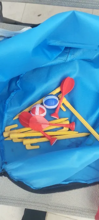 Arco universal para colgar juguetes en la hamaca de tu bebé. Permite añadir diversión y estimulación. El precio es por: - Un arco de actividades. - La mirad de los juguetes colgantes y los cuelgues de la foto: pelotas, monos, ruedas y un espejo. - Colores variados: verde, amarillo, naranja, morado y rojo; si te llevas un solo arco, puedes seleccionar colores. (Algunos están con los ojos despintados). Si te interesa todo, lo dejamos en 14 € Hago envíos por Wallapop o entrega en mano en el centro de Sevilla. Para esta última opción, sólo pago en metálico o mediante QR de la aplicación.