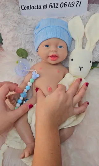 Vendo Precioso bebé reborn de cuerpo de tela y extremidades de silicona. - Nuevo a estrenar. - Género niño - Aspecto realista. - Tamaño 46cm - Peso 1kg. - Ideal para coleccionistas o como regalo especial. - Incluida ropa, chupete, biberón y partida de nacimiento. Hago envíos por wallapop. Puede ver otros muñecos y otros artículos interesantes en mi perfil.