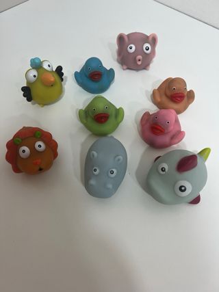 Lote de juguetes para el baño de bebés y niños pequeños. Incluye animales y figuras. - Juguetes de goma blandos. - Colores variados: amarillo, rojo, azul, verde, rosa, blanco y gris. Despierta el interés de los más pequeños y haz del baño un momento divertido - Incluye figuras de animales como oveja, cerdo, vaca, pato, tortuga.. - Tres barquitos - Un libro de baño con animales - Bolsa con ventosa para poder tenerlo organizado y a mano