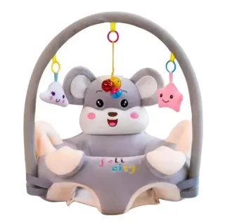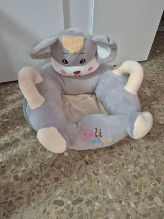 Asiento de peluche para bebés con diseño de animal. - Color gris. - Suave al tacto. - Bordado feli city en la parte delantera. Se entrega con los juguetes en la foto no sale porque lo tengo guardado