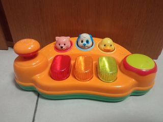 Juguete interactivo para bebés con divertidas luces y sonidos, es como un piano que tiene un tambor y unos platillos, en buen estado, con pilas incluidas. Se puede enviar o recoger en Tienda Solidaria Piel de Mariposa BENIMACLET C/ Dolores Marqués 30 (Esquina con Torreta de Miramar + info en la última foto)..